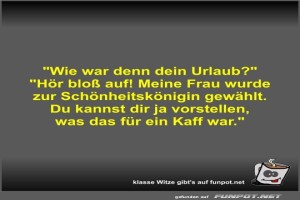 | Wie war denn dein Urlaub? Bild (31.62 KB) 5Lustiges → klasse Sprüche und Witze | Lustiges → klasse Sprüche und Witze | 15.11.24-10:33 | Fossy | |