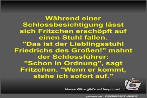 | Während einer Schlossbesichtigung lässt sich Fritzchen... Bild (48.07 KB) 3Lustiges → klasse Sprüche und Witze | Lustiges → klasse Sprüche und Witze | 17.11.24-17:59 | Fossy | |