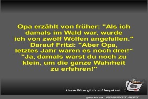 | Opa erzählt von früher Bild (41.06 KB) 4Lustiges → klasse Sprüche und Witze | Lustiges → klasse Sprüche und Witze | 10.11.24-17:48 | Fossy | |