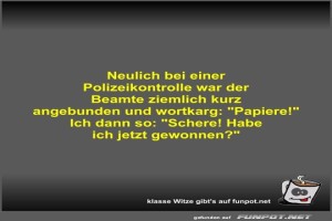 | Neulich bei einer Polizeikontrolle war der Beamte ziemlich Bild (27.96 KB) 5Lustiges → klasse Sprüche und Witze | Lustiges → klasse Sprüche und Witze | 01.11.24-12:56 | Fossy | |