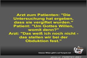 | Arzt zum Patienten Bild (38.87 KB) 3Lustiges → klasse Sprüche und Witze | Lustiges → klasse Sprüche und Witze | 31.10.24-12:56 | Fossy | |
