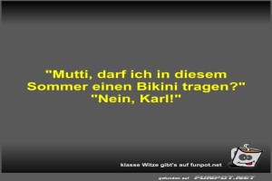 | Mutti, darf ich in diesem Sommer einen Bikini tragen? Bild (21.24 KB) 2Lustiges → klasse Sprüche und Witze | Lustiges → klasse Sprüche und Witze | 31.10.24-09:58 | Fossy | |