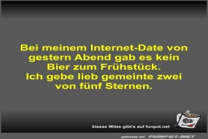 | Bei meinem Internet-Date von gestern Abend gab es kein Bier Bild (30.56 KB) 1Lustiges → klasse Sprüche und Witze | Lustiges → klasse Sprüche und Witze | 02.11.24-10:04 | Fossy | |