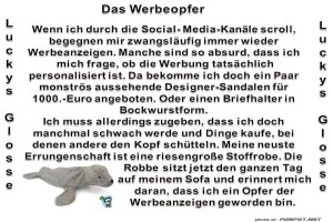 | Das Werbeopfer Bild (135.25 KB) 29Lustiges → klasse Sprüche und Witze | Lustiges → klasse Sprüche und Witze | 01.11.24-22:32 | lucky | |