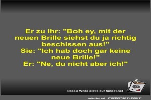 | Er zu ihr: Boh ey, mit der neuen Brille siehst du ja... Bild (32.61 KB) 3Lustiges → klasse Sprüche und Witze | Lustiges → klasse Sprüche und Witze | 30.10.24-10:07 | Fossy | |