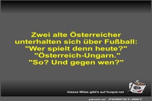 | Zwei alte Österreicher unterhalten sich über Fußball Bild (30.44 KB) 4Lustiges → klasse Sprüche und Witze | Lustiges → klasse Sprüche und Witze | 28.10.24-17:17 | Fossy | |