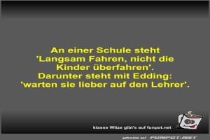 | An einer Schule steht 'Langsam Fahren Bild (28.21 KB) 3Lustiges → klasse Sprüche und Witze | Lustiges → klasse Sprüche und Witze | 27.10.24-16:23 | Fossy | |