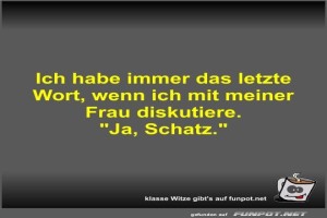 | Ich habe immer das letzte Wort Bild (26.05 KB) 3Lustiges → klasse Sprüche und Witze | Lustiges → klasse Sprüche und Witze | 27.10.24-12:16 | Fossy | |