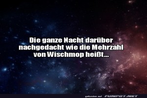 | Mehrzahl von Wischmop Bild (72.41 KB) 2Lustiges → klasse Sprüche und Witze | Lustiges → klasse Sprüche und Witze | 27.10.24-13:24 | ||