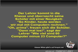 | Der Lehrer kommt in die Klasse und überrascht seine Schüler Bild (42.5 KB) 2Lustiges → klasse Sprüche und Witze | Lustiges → klasse Sprüche und Witze | 26.10.24-09:17 | Fossy | |