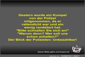 | Gestern wurde ein Kumpel von der Polizei mitgenommen Bild (36.54 KB) 3Lustiges → klasse Sprüche und Witze | Lustiges → klasse Sprüche und Witze | 26.10.24-12:56 | Fossy | |