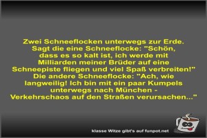 | Zwei Schneeflocken unterwegs zur Erde Bild (45.71 KB) 2Lustiges → klasse Sprüche und Witze | Lustiges → klasse Sprüche und Witze | 15.09.-12:43 | Fossy | |