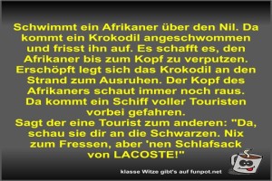 | Schwimmt ein Afrikaner über den Nil Bild (65.88 KB) 2Lustiges → klasse Sprüche und Witze | Lustiges → klasse Sprüche und Witze | 12.09.-14:26 | Fossy | |