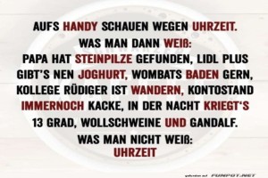 | Aufs Handy schauen Bild (98.23 KB) 4Lustiges → klasse Sprüche und Witze | Lustiges → klasse Sprüche und Witze | 20.10.24-09:42 | Tammo1978 | |