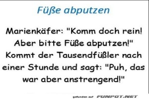 | Füße abputzen Bild (38.49 KB) 4Lustiges → klasse Sprüche und Witze | Lustiges → klasse Sprüche und Witze | 19.10.24-09:56 | Keule56 | |
