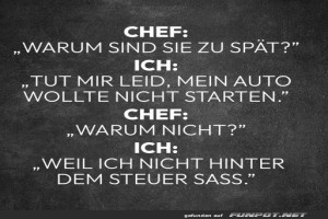 | Auto wollte nicht starten Bild (102.22 KB) 3Lustiges → klasse Sprüche und Witze | Lustiges → klasse Sprüche und Witze | 19.10.24-08:54 | Tammo1978 | |