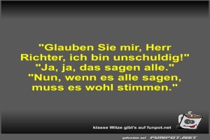 | "Glauben Sie mir, Herr Richter, ich bin unschuldig!" Bild (31.74 KB) 2Lustiges → klasse Sprüche und Witze | Lustiges → klasse Sprüche und Witze | 19.10.24-09:58 | Fossy | |