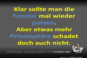 | Privatsphäre Bild (73.18 KB) 9Lustiges → klasse Sprüche und Witze Also mir ist Privatsphäre auch wichtiger als geputzte Fenster :-) | Lustiges → klasse Sprüche und Witze | 16.10.24-14:06 | Fossy | |