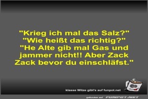 | Krieg ich mal das Salz? Bild (34.29 KB) von Fossy am 17. Oktober 2024 um 11:02 Uhr Lustiges → klasse Sprüche und Witze | Lustiges → klasse Sprüche und Witze | 17.10.24-11:02 | Fossy | ||