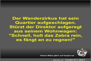 | Der Wanderzirkus hat sein Quartier aufgeschlagen Bild (38.63 KB) 2Lustiges → klasse Sprüche und Witze | Lustiges → klasse Sprüche und Witze | 16.10.24-09:39 | Fossy | |