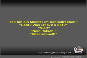 | "Ich bin ein Meister im Schnellrechen!" Bild (21.58 KB) 3Lustiges → klasse Sprüche und Witze | Lustiges → klasse Sprüche und Witze | 15.10.24-16:53 | Fossy | |