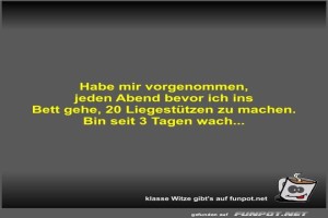 | Habe mir vorgenommen, jeden Abend bevor ich ins Bett gehe, Bild (23.21 KB) 3Lustiges → klasse Sprüche und Witze | Lustiges → klasse Sprüche und Witze | 12.10.24-18:16 | Fossy | |
