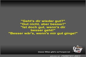 | Geht's dir wieder gut? Bild (24.5 KB) 2Lustiges → klasse Sprüche und Witze | Lustiges → klasse Sprüche und Witze | 11.10.24-09:23 | Fossy | |