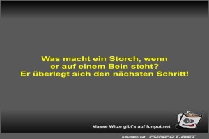 | Was macht ein Storch, wenn er auf einem Bein steht? Bild (20.94 KB) 2Lustiges → klasse Sprüche und Witze | Lustiges → klasse Sprüche und Witze | 10.10.24-19:11 | Fossy | |