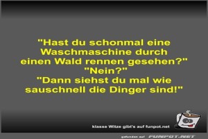 | Hast du schonmal eine Waschmaschine durch einen Wald... Bild (32.5 KB) 2Lustiges → klasse Sprüche und Witze | Lustiges → klasse Sprüche und Witze | 08.10.24-18:05 | Fossy | |