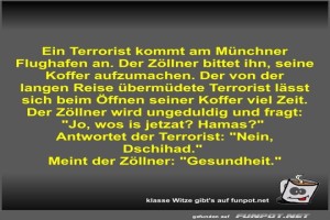 | Ein Terrorist kommt am Münchner Flughafen an Bild (50.36 KB) 2Lustiges → klasse Sprüche und Witze | Lustiges → klasse Sprüche und Witze | 09.10.24-10:06 | Fossy | |