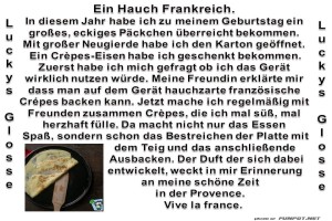 | Ein Hauch von Frankreich Bild (146.17 KB) 3Lustiges → klasse Sprüche und Witze | Lustiges → klasse Sprüche und Witze | 01.10.24-22:00 | lucky | |