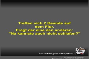 | Treffen sich 2 Beamte auf dem Flur Bild (23.17 KB) 2Lustiges → klasse Sprüche und Witze | Lustiges → klasse Sprüche und Witze | 30.09.24-13:23 | Fossy | |