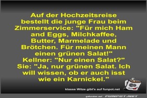| Auf der Hochzeitsreise bestellt die junge Frau beim... Bild (53.08 KB) 3Lustiges → klasse Sprüche und Witze | Lustiges → klasse Sprüche und Witze | 30.09.24-18:05 | Fossy | |