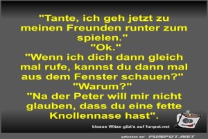 | Tante, ich geh jetzt zu meinen Freunden runter zum spielen Bild (48.74 KB) 2Lustiges → klasse Sprüche und Witze | Lustiges → klasse Sprüche und Witze | 01.10.24-17:29 | Fossy | |