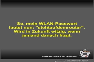 | So, mein WLAN-Passwort lautet nun Bild (27.31 KB) 3Lustiges → klasse Sprüche und Witze | Lustiges → klasse Sprüche und Witze | 02.10.24-17:27 | Fossy | |