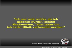 | "Ich war sehr schön, als ich geboren wurde", erzählt... Bild (24.6 KB) 2Lustiges → klasse Sprüche und Witze | Lustiges → klasse Sprüche und Witze | 01.10.24-09:25 | Fossy | |