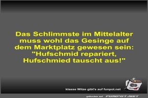 | Das Schlimmste im Mittelalter muss wohl das Gesinge auf dem Bild (32.92 KB) 6Lustiges → klasse Sprüche und Witze | Lustiges → klasse Sprüche und Witze | 27.09.24-17:40 | Fossy | |