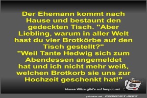 | Der Ehemann kommt nach Hause und bestaunt den gedeckten... Bild (56.31 KB) 3Lustiges → klasse Sprüche und Witze | Lustiges → klasse Sprüche und Witze | 29.09.24-19:08 | Fossy | |