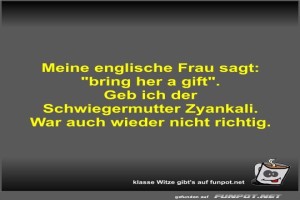 | Meine englische Frau sagt Bild (28.51 KB) 2Lustiges → klasse Sprüche und Witze | Lustiges → klasse Sprüche und Witze | 23.09.24-17:32 | Fossy | |
