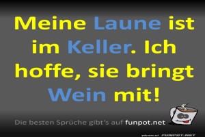 | Meine Laune Bild (66.39 KB) 3Lustiges → klasse Sprüche und Witze Das würde ich mir manchmal wünschen, dass mir meine Laune Wein aus dem Keller mitbringt ;-) | Lustiges → klasse Sprüche und Witze | 22.09.24-14:34 | ||