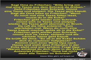| Sagt Oma zu Fritzchen Bild (103.93 KB) 5Lustiges → klasse Sprüche und Witze | Lustiges → klasse Sprüche und Witze | 22.09.24-17:19 | Fossy | |