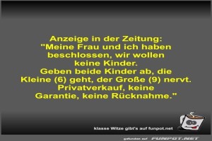 | Wenn man Kinder hat Bild (30.81 KB) 2Lustiges → klasse Sprüche und Witze | Lustiges → klasse Sprüche und Witze | 24.09.24-08:38 | Isabell-05 | |