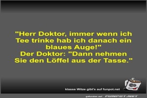 | Herr Doktor, immer wenn ich Tee trinke hab ich danach ein Bild (30.93 KB) 3Lustiges → klasse Sprüche und Witze | Lustiges → klasse Sprüche und Witze | 19.09.24-17:28 | Fossy | |