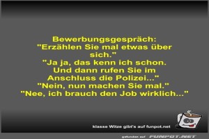 | Bewerbungsgespräch Bild (34.81 KB) 1Lustiges → klasse Sprüche und Witze | Lustiges → klasse Sprüche und Witze | 20.09.24-10:38 | Fossy | |