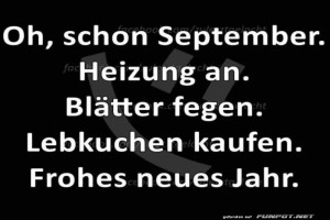 | Schon September Bild (58.23 KB) 4Lustiges → klasse Sprüche und Witze | Lustiges → klasse Sprüche und Witze | 16.09.24-08:16 | Keule56 | |