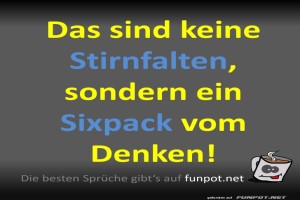 | Keine Stirnfalten Bild (66.02 KB) 4Lustiges → klasse Sprüche und Witze Ein Sixpack vom Denken hört sich auf jeden Fall viel besser an als Stirnfalten ;-) | Lustiges → klasse Sprüche und Witze | 16.09.24-10:43 | ||