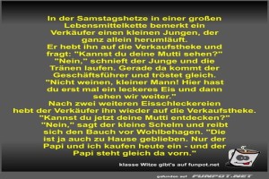 | In der Samstagshetze in einer großen Lebensmittelkette... Bild (72.69 KB) 3Lustiges → klasse Sprüche und Witze | Lustiges → klasse Sprüche und Witze | 15.09.24-13:48 | Fossy | |