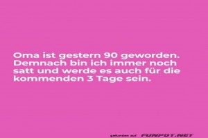 | Oma hatte Geburtstag Bild (39.52 KB) von Kelly24 am 15. September 2024 um 09:53 Uhr Lustiges → klasse Sprüche und Witze | Lustiges → klasse Sprüche und Witze | 15.09.24-09:53 | Kelly24 | ||