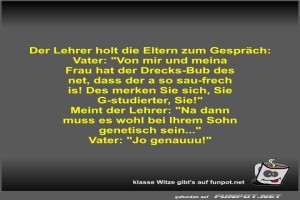 | Der Lehrer holt die Eltern zum Gespräch Bild (38.38 KB)  2Lustiges → klasse Sprüche und Witze  | Lustiges → klasse Sprüche und Witze | 29.08.24-09:59 | Fossy | |