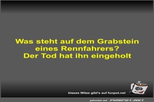 | Was steht auf dem Grabstein eines Rennfahrers? Bild (22.75 KB)  1Lustiges → klasse Sprüche und Witze  | Lustiges → klasse Sprüche und Witze | 30.08.24-13:34 | Fossy | |